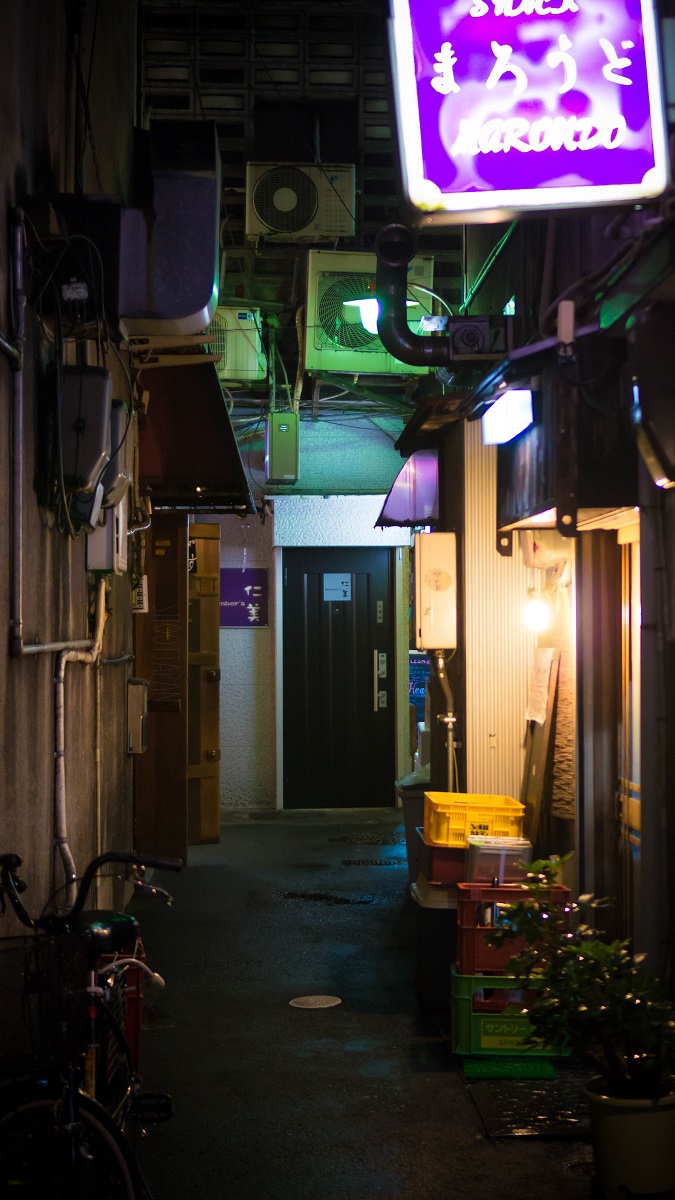 Entre les gratte-ciel d’Osaka, les petites rues, ou se cachent de minuscules mais excellents restaurants/bars.
